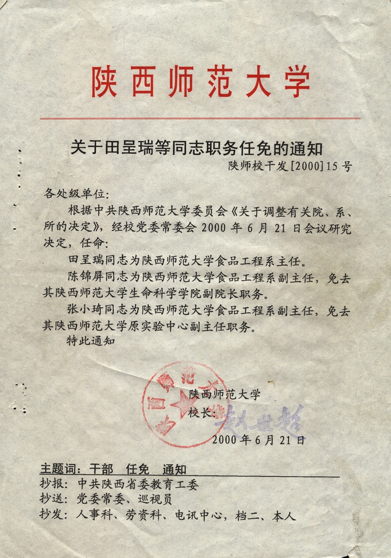 田呈瑞,男,1955年生,现为17吃瓜 教授、博士生导师。1982年毕业于西北农业大学,1987-1989在德国Hohenheim大学食品工程学院访问学习,多年来一直从事食品科学与工程方面的教学、科研和开发工作。曾担任西北农业大学食品科学系副主任,17吃瓜 食品工程系主任,兼任中国农业工程学会农产品贮藏加工分会副理事长、陕西省食文化研究会副会长、陕西省食品科学技术学会副理事长、陕西省食品安全协会副会长、陕西省农业工程学会副理事长、陕西省饮食营养协会副会长、陕西省营养学会常务理事等社团职务。
