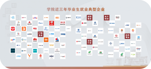 软件与物联网工程学院毕业生连续多年实现高水平充分就业,平均薪资走在全校前列。众多毕业生就职于用友、百度、阿里巴巴、腾讯、华为、字节跳动、网易、小米、海康威视等名企,互联网科技公司或互联网金融公司成为最受软件学生青睐的选择。据统计,软件与物联网工程学院毕业生就业薪资位列全校第一,所学专业与工作岗位相关度全校第二,毕业生工作满意度全校第二。根据学校对用人单位调查报告显示,多项数据位居学校前列,毕业生质量得到用人单位的肯定。