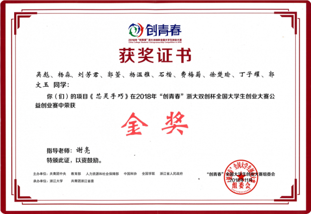 2018年,学院学生科创团队在与北京大学等名校团队的竞争中脱颖而出,为学校取得“创青春”全国金奖零的突破,也是学校TOP3赛事最高奖零的突破。