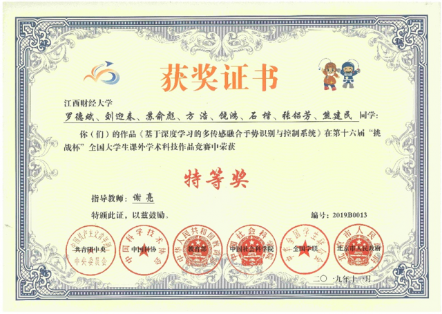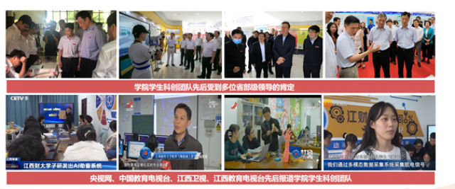 2019年,学院学生科创团队以全国本科第一名的成绩,与清华大学博士生团队并列获得“挑战杯”科技发明类特等奖,这是挑战杯办赛30年以来,江西省高校中“挑战杯”科技发明类全国特等奖零的突破,也是全国财经院校科技类全国特等奖零的突破。