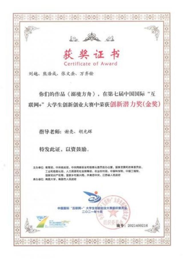 2021年,在第七届中国国际“互联网+”大学生创新创业大赛全国总决赛上,学院学生科创团队为我校实现全国总决赛金奖银奖双突破(两项萌芽赛道,一项主赛道),获得1金2银的优异成绩。