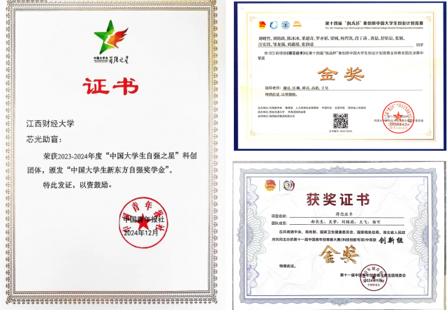 2024年,学院学生科创团队作品《得芯应手》在第十四届 “挑战杯” 秦创原中国大学生创业计划竞赛(原 “创青春”)中荣获国家金奖,同时在第十一届 “创青春” 中国青年创新创业大赛中斩获全国金奖,成为所在产业在校本科生群体中唯一获此殊荣的团队。学院学生“芯光助盲”团队荣获首届“中国大学生自强之星”科创团体(全国仅100支)。