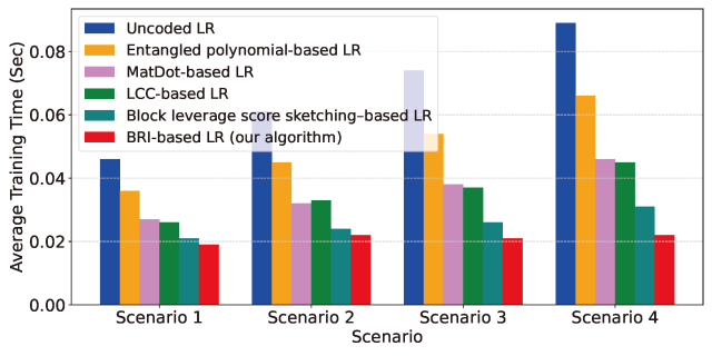 团队基于BRI框架设计梯度编码方案,应用于分布式线性回归训练,实验结果显示: