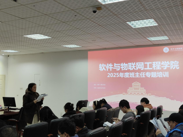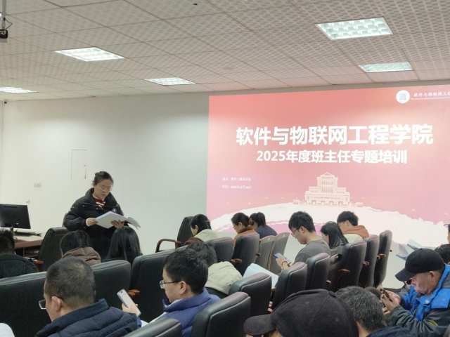 为全面总结本学年学生工作经验,为班主任队伍系统赋能,进一步提升育人实效,12月24日下午,软件与物联网工程学院于荟庐二楼会议室召开2025年度班主任专题培训会议。学院党委书记季小刚,党委副书记匡琳,全体班主任以及学工小组成员参加会议,会议由匡琳主持。