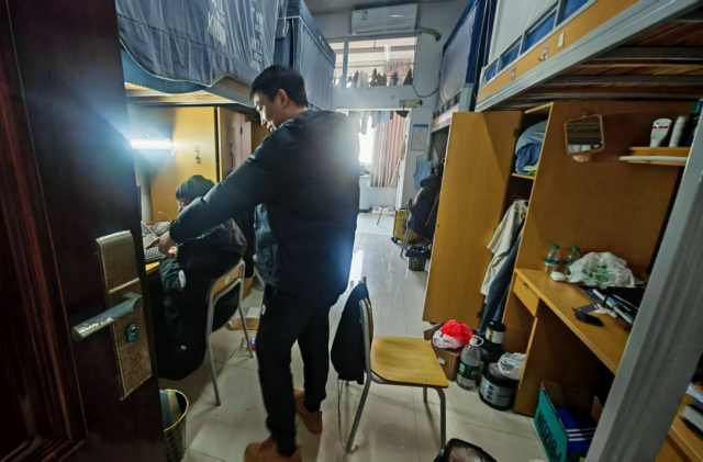 走访过程中,学院逐间细致排查宿舍电线铺设规范度、电路老化情况及插座使用状态,重点核查是否存在私拉乱接电线、违规串联插座等安全隐患,对排查发现的不规范用电问题现场指出并督促学生即时整改,确保隐患清零。在卫生方面,检查宿舍地面清洁、物品摆放等情况,对杂物纸箱堆积、卫生死角等问题提醒学生及时清理,引导学生保持整洁住宿环境。