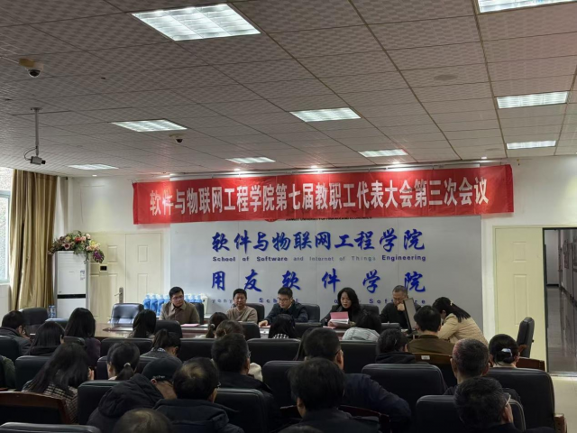 1月15日下午,软件与物联网工程学院第七届教职工代表大会第三次会议暨2025年度总结表彰大会在学院二楼会议室召开。学院全体领导班子成员、全体教职工及退休教师代表参会,共商学院发展规划,总结年度工作成效。会议由学院党委副书记匡琳主持。