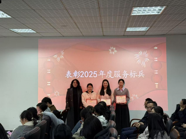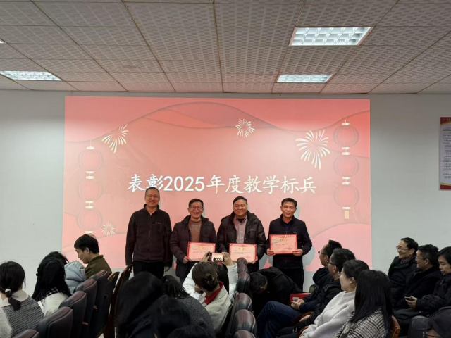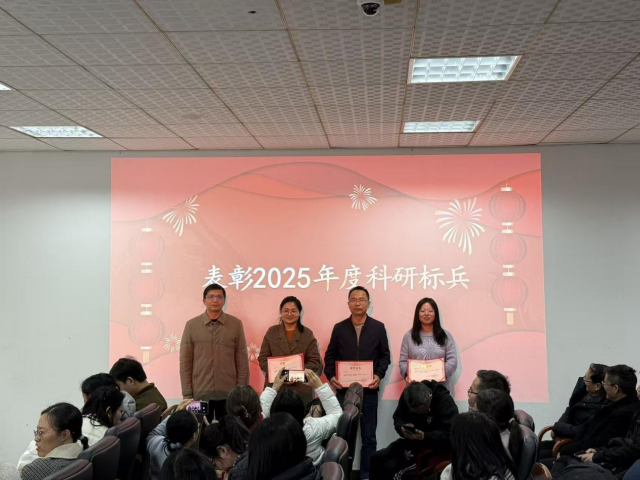 为表彰先进、树立标杆,大会对2025年度表现突出的教职工予以表彰。过去一年,全院教职工立足本职岗位、主动担当作为,以攻坚克难的韧劲突破发展难题,以精益求精的态度争创一流业绩,取得了一系列亮眼成果。匡琳宣读2025年度院级标兵名单,罗远胜副院长、汪靖副院长及匡琳分别为院级教学标兵、科研标兵、服务标兵颁奖,现场掌声雷动,充分彰显了学院崇尚先进、激励奋进的优良风气。